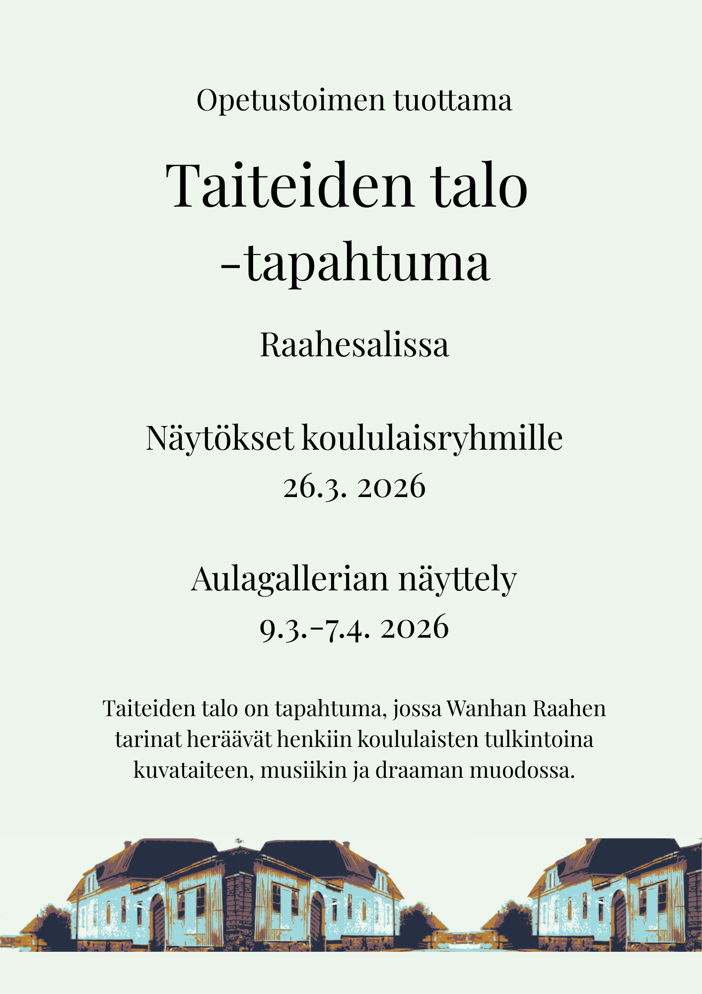 Raahe-opiston 80-v juhlanäyttelyssä on esillä Tapahtumatalon näyttelytilojen lisäksi myös Vihannin Ukonkantissa ja Pyhäjoella.